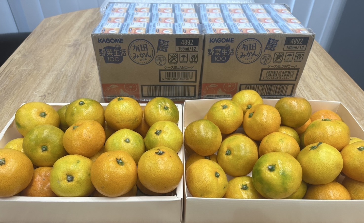 その貴重なみかんと、昨日から全国発売されている「野菜生活100有田みかんミックス」をお送り頂きました。