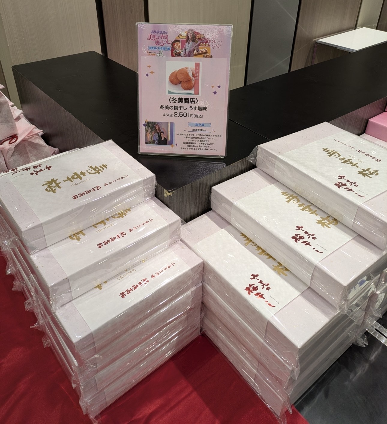 高見沢俊彦さんの番組「高見沢俊彦の美味しい音楽美しいメシ」に出演した時にご紹介させて頂きました、「冬美の梅干し」と「呼きつねのいなりずし」が、本日より18日まで日本橋三越での番組イベント「美食祭 in 日本橋三越」にて販売されます。