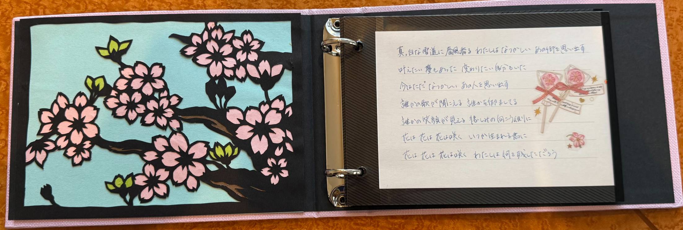 写真は、今年もファミリーが手書きして下さった歌詞カードです。
