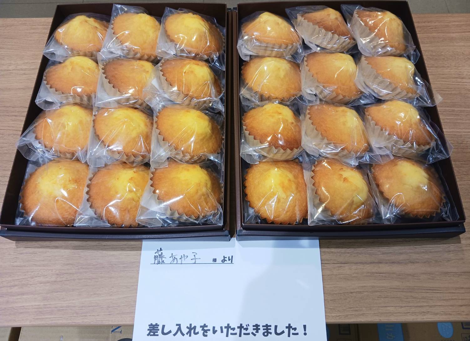 早速、あや子さんからマドレーヌの差し入れを頂きました〜! *\(^o^)/* 甘塩っぱくてメッチャ美味しかったで〜す。 あやちゃん、ご馳走さまでした。 m(_ _)m
