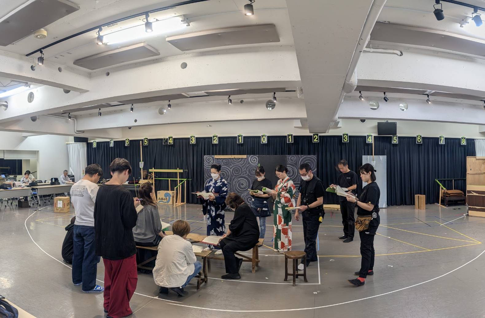 今日は、一路真輝さんとのシーンをたっぷりお稽古して頂きました。 (=´∀`)人(´∀`=) 覚えてるはずのセリフが動きをつけると、止まってしまったり、モゴモゴしたり、なかなか上手くいかないもんです。 (≧∀≦) 写真は宮田先生からのアドバイスを頂きながら、みんなでセリフを確認しているところです。 みんな真剣な表情ですね。 σ(^_^;) では、明日もよろしくお願いしま〜す。 m(_ _)m
