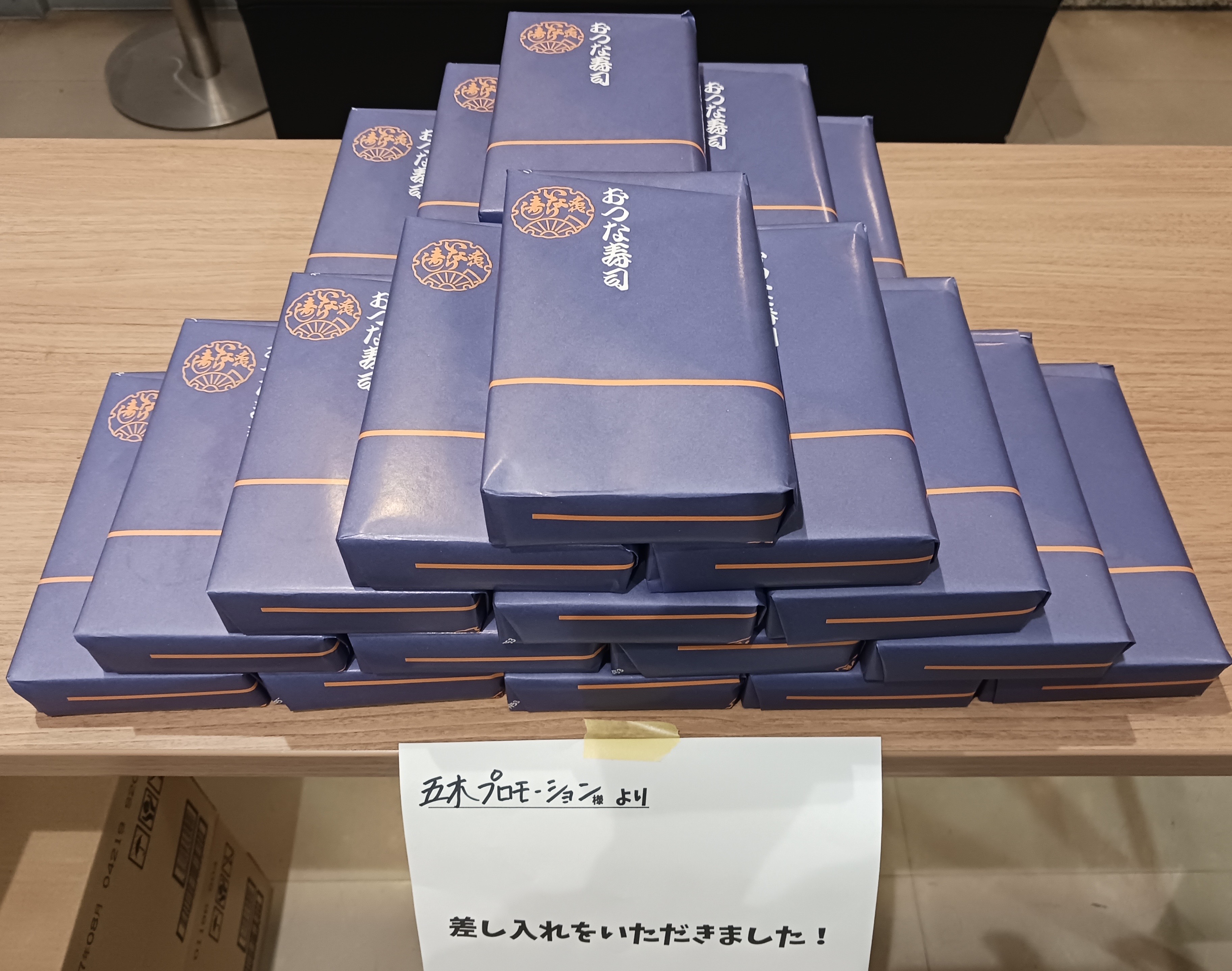 沢山の差し入れを持ってマネージャーの黒澤さんが、陣中見舞いにお越し下さいました。 五木先輩、お心遣いを頂きまして、ありがとうございました。 m(_ _)m みんなで美味しく頂きました。 *\(^o^)/*